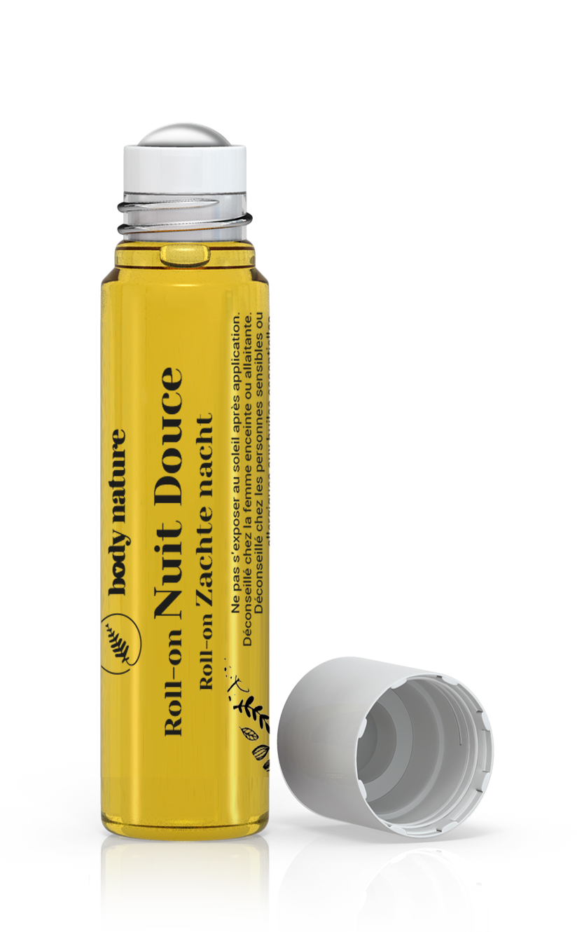 La Brume d’oreiller pour créer une atmosphère apaisante et le Roll-on sommeil pour s’endormir en douceur