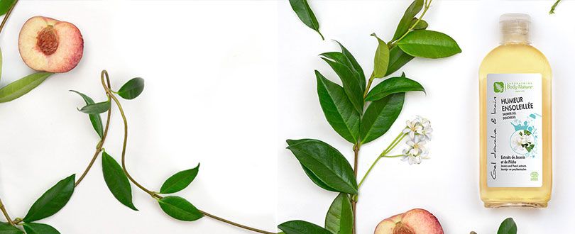 Prolongez les bienfaits des vacances avec Humeur ensoleillée, un soin de douche bio à la texture gel, enrichi en actifs issus du pourtour méditerranéen. Les extraits de Jasmin, fleur blanche au pouvoir hydratant, de Pêche, fruit gorgé de vitamines aux propriétés revitalisantes, procurent ainsi confort à votre peau. Sa mousse fine nettoie en douceur et ses notes fleuries et solaires parfument délicatement votre peau.