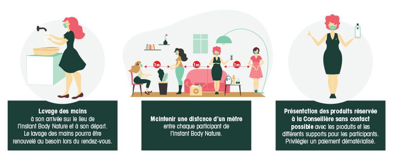 Depuis le début de la crise sanitaire et afin de s’adapter aux choix personnels des clientes, les Instants Body Nature se sont réinventés et se vivent aujourd’hui à domicile ou à distance. Pour inscrire ce changement dans la durée, un protocole strict a été mis en place pour assurer la sécurité des clientes et des Conseillères, tout en garantissant une qualité de conseils et de personnalisation optimale.