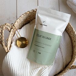 L’Eclat du linge se présente sous forme de poudre et s’associe à la Poudre linge Body Nature pour renforcer l'action de lavage et de détachage en cas de linge sale (grisaille, taches d'herbe ou de terre). L’Eclat du linge s’utilise de 40°C à 90°C, elle aidera aussi à diminuer la formation du tartre dans votre lave-linge. Elle contient notamment du percarbonate de sodium qui évite le grisaillement du linge.