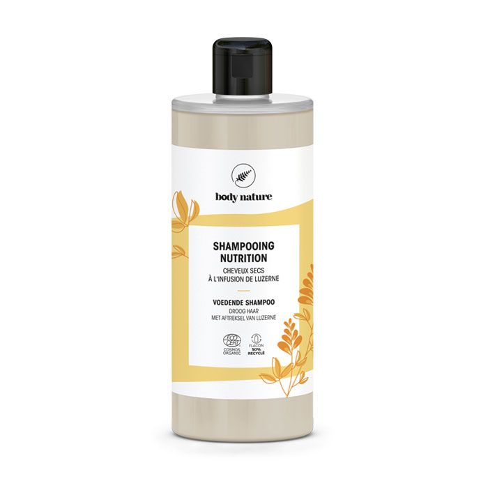 Si vous avez les cheveux déshydratés, nous vous conseillons de tester le Shampooing nutrition Body Nature. Formulé avec une infusion de Luzerne de notre Domaine, ce shampooing certifié bio répare des racines jusqu’aux pointes pour des cheveux brillants et doux. En complément, vous pouvez apporter encore plus de nutrition avec le soin nutrition cheveux 2en1. Pratique pour les vacances, ce produit vous offre deux utilisations possibles : en après-shampooing pour une action express ou en masque à laisser poser 10 minutes après votre shampooing pour réparer les cheveux secs en profondeur.