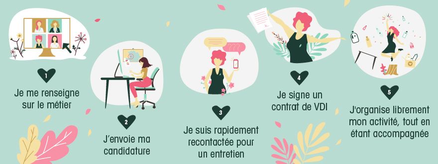 1. Vous ne connaissez pas le métier de Conseillère de vente ? Vous vous posez des questions sur les avantages, les évolutions possibles, la formation ? Vous vous demandez ce qu'est un vendeur VDI ? Découvrez notre vision de l'activité de Conseillère lors d'un webinaire. C'est l'occasion de poser toutes vos questions sur le métier de Vendeur à Domicile Indépendant. Notre équipe de recrutement et nos Conseillères seront ravies de vous répondre. Vous pouvez également visionner le replay d'un Facebook Live et relire notre article « Vrai / Faux » pour tout savoir sur le métier de Conseillère.